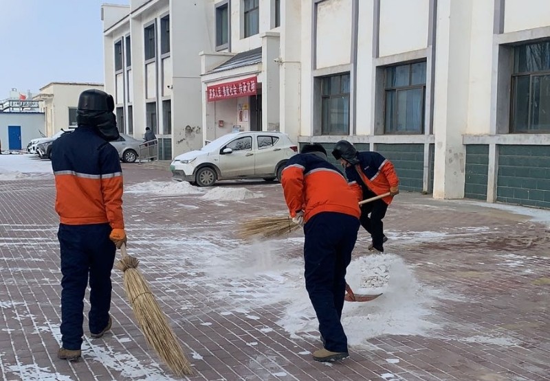 一早,大家分工有序,配合默契,干勁十足,揮舞著掃帚、鐵鍬等除雪工具,你鏟我掃,一派熱火朝天,將雪先掃到一處處集中堆放,再齊心協(xié)力搬運(yùn)至墻角,不給“安全隱患”留機(jī)會(huì)。盡管戴著棉帽子,臉卻凍得通紅,但手中的工具卻也絲毫沒有松懈,除雪的身影依舊堅(jiān)定穩(wěn)健。天氣雖冷,勞動(dòng)的熱情卻溫暖了整個(gè)冬日,整潔的工服亦構(gòu)成一道道亮麗的風(fēng)景線。