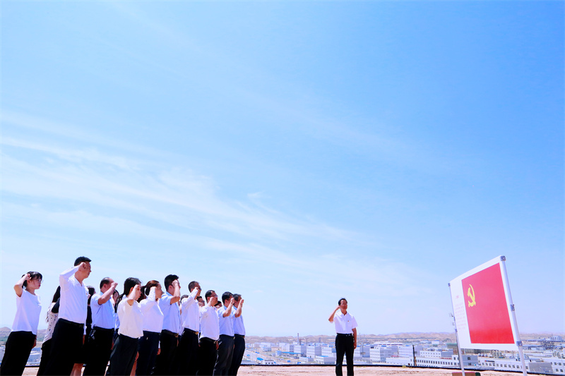 (全體黨員在蘭州新區(qū)綠色化工園區(qū)重溫入黨詩詞 周小勇/攝)