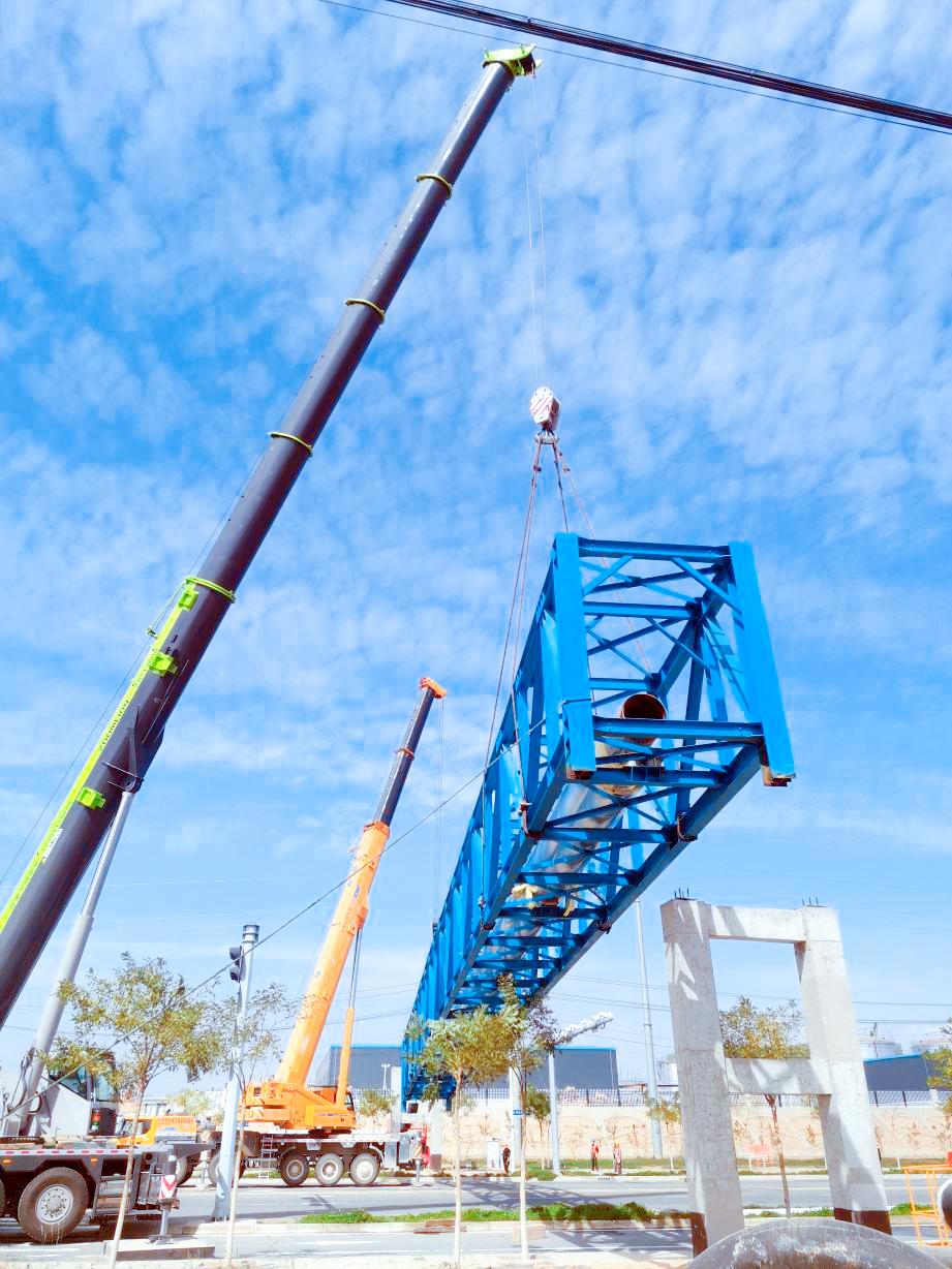 此次熱力管廊桁架吊裝順利完成,為東擴區(qū)入園企業(yè)按期蒸汽供應(yīng)奠定了基礎(chǔ),同時將保證專精特新化工產(chǎn)業(yè)孵化基地C區(qū)入駐企業(yè)調(diào)試及試生產(chǎn)期間的蒸汽需求。