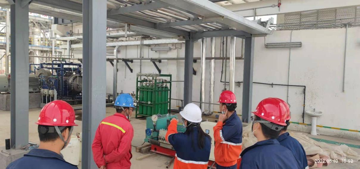 2022年5月10日,液態(tài)太陽(yáng)合成示范工程電解水制氫裝置氣體純化項(xiàng)目(以下簡(jiǎn)稱(chēng)純化項(xiàng)目)高壓管線試壓工作已順利完成,助推純化項(xiàng)目更快投入使用。