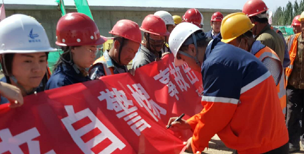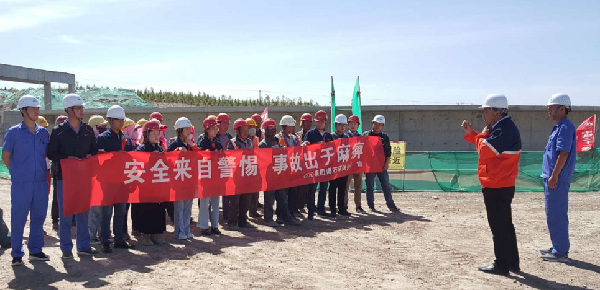 活動(dòng)中,博石環(huán)保公司組織全體職工及施工監(jiān)理單位工作人員在宣傳條幅上簽字,對(duì)工作中履行的安全生產(chǎn)職責(zé)作出承諾。博石環(huán)保公司總經(jīng)理朱伯麟結(jié)合今年“消除事故隱患,筑牢安全防線”的安全生產(chǎn)月活動(dòng)主題,圍繞“責(zé)任落實(shí)、隱患排查、風(fēng)險(xiǎn)管控、應(yīng)急處置”等內(nèi)容進(jìn)行安全宣講。