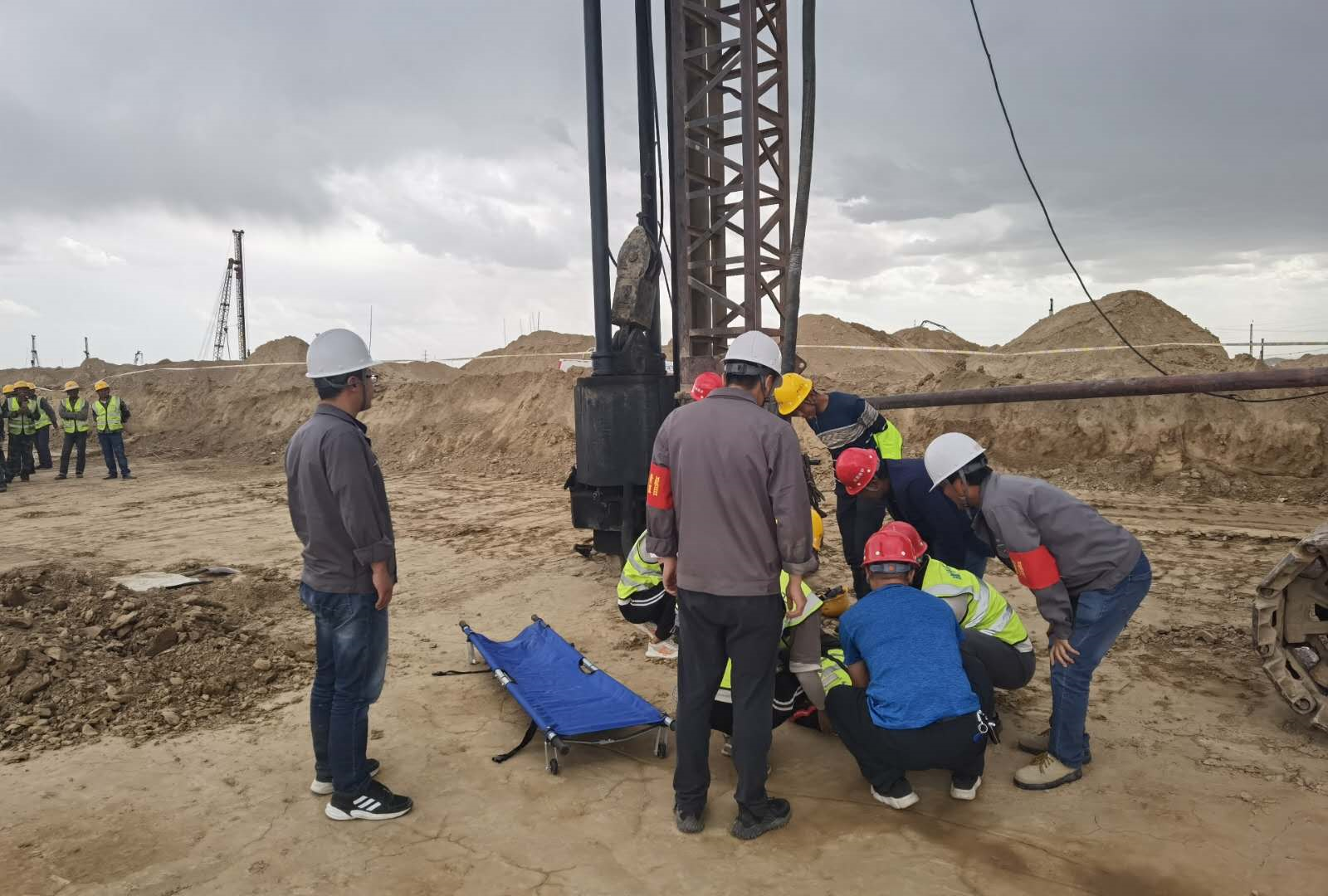 為進一步提高全體項目參建員工安全意識,增強應對突發(fā)事件的處置能力,6月24日,化學工程公司在專精特新化工科技產(chǎn)業(yè)園項目B區(qū)施工現(xiàn)場,開展了擠密樁樁機作業(yè)安全事故應急救援演練活動,化學工程公司相關(guān)負責人、工程技術(shù)部、HSE管理部、勞務分包單位共80余人參加了此次演練。