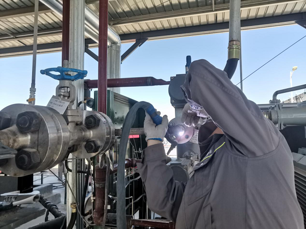 石投集團化學(xué)工程公司本著“急業(yè)主所急,想業(yè)主所想”的原則,作業(yè)人員相互協(xié)調(diào)配合,圓滿完成一項又一項工作任務(wù),相繼高效完成了污水處理廠事故池抽水泵管道改造工程、蘭州新區(qū)專精特新化工科技有限公司液態(tài)太陽燃料合成甲醇裝置兩臺隔膜壓縮機進口緩沖罐更換及管線改造工程、電解水制氫車間防護欄制作安裝等工程,為園區(qū)企業(yè)提供了優(yōu)質(zhì)高效的服務(wù),為園區(qū)建設(shè)添磚加瓦,貢獻自己的全部力量。