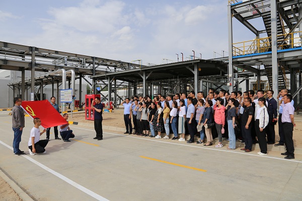 活動(dòng)伊始,全體黨員俯瞰了化工園區(qū)整體建設(shè)情況,工作人員對(duì)石投集團(tuán)全力打造的基礎(chǔ)配套設(shè)施管理運(yùn)營(yíng)、專(zhuān)精特新廠房集聚帶動(dòng)、科技工程示范引領(lǐng)三大特色產(chǎn)業(yè)板塊進(jìn)行了全面介紹。全體黨員走進(jìn)石投集團(tuán)專(zhuān)精特新產(chǎn)業(yè)園A區(qū)標(biāo)準(zhǔn)化專(zhuān)用廠房,看到了眾多入駐企業(yè)安裝設(shè)備、試車(chē)投產(chǎn)的火熱景象。在液態(tài)陽(yáng)光示范項(xiàng)目現(xiàn)場(chǎng),近距離參觀了解全球首套千噸級(jí)規(guī)模太陽(yáng)燃料合成示范項(xiàng)目,并在項(xiàng)目現(xiàn)場(chǎng),全體黨員面對(duì)鮮紅的黨旗,莊嚴(yán)地高舉右拳,鏗鏘有力地重溫入黨誓詞,將共產(chǎn)黨員的榮耀、責(zé)任和使命牢牢銘記在心中。