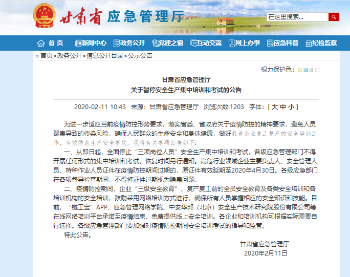 為全面落實(shí)疫情防控和安全培訓(xùn)工作要求,蘭州新區(qū)化學(xué)工程有限公司培訓(xùn)中心結(jié)合疫情防控和復(fù)產(chǎn)復(fù)工實(shí)際,根據(jù)甘肅省應(yīng)急管理廳2月11日發(fā)布的《關(guān)于暫停安全生產(chǎn)集中培訓(xùn)和考試的公告》相關(guān)要求,在疫情期間免費(fèi)為新區(qū)企業(yè)提供線上復(fù)工復(fù)產(chǎn)專題安全培訓(xùn)。