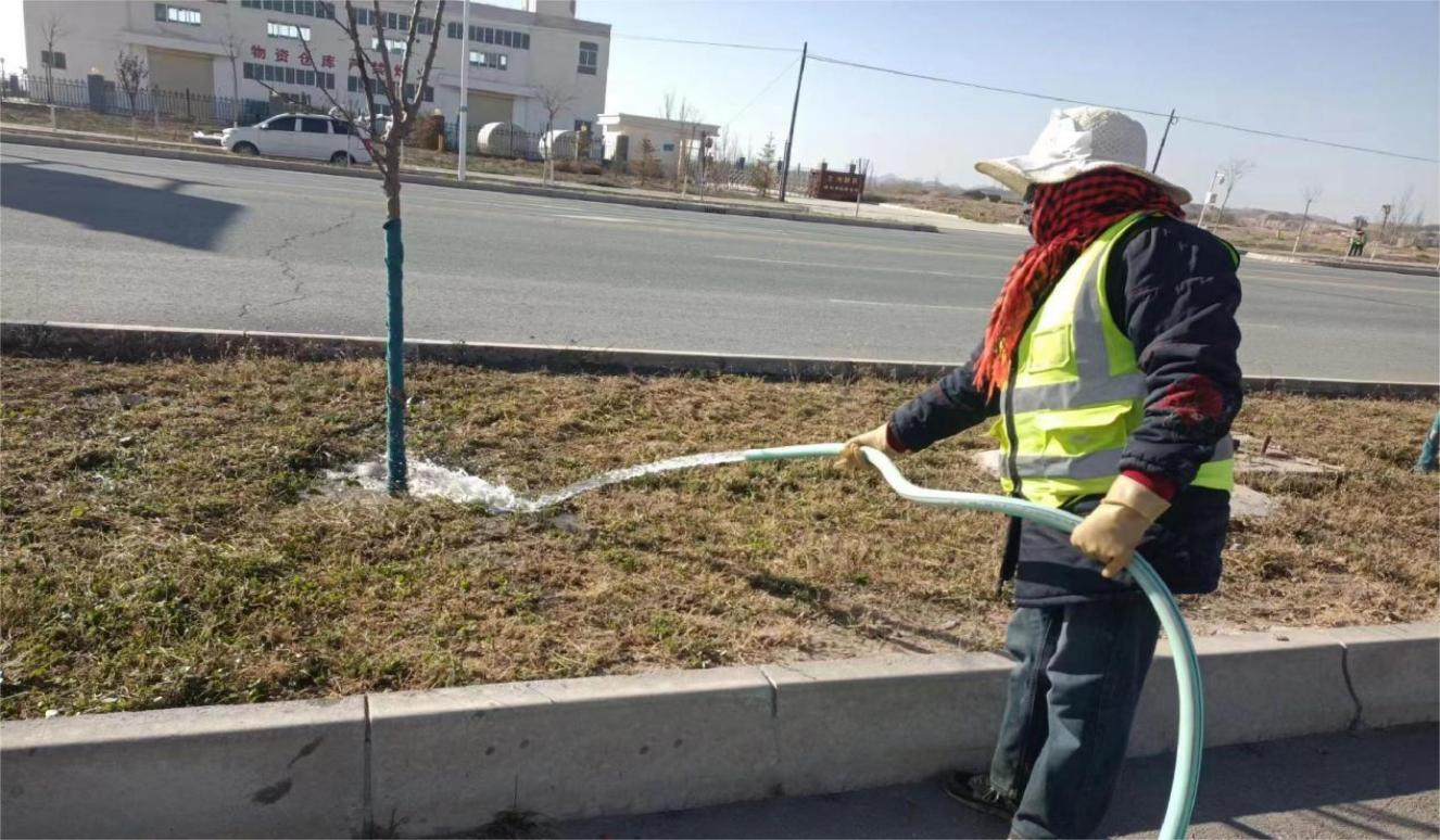 冬灌采用水車澆灌、人工澆灌、噴灌等多種形式確保水分充分滲透到土壤中。同時(shí),加大巡查力度,采取實(shí)地抽樣檢查冬灌滲水深度,對澆灌不徹底和過度灌溉的綠地要求立即進(jìn)行整改,確保每塊綠地澆灌徹底,使苗木吸收到充足水分,對新栽植的苗木結(jié)合封凍水在樹木根部培起土堆加強(qiáng)其保溫、保濕效果,目前冬灌正在有序進(jìn)行中。