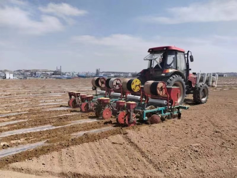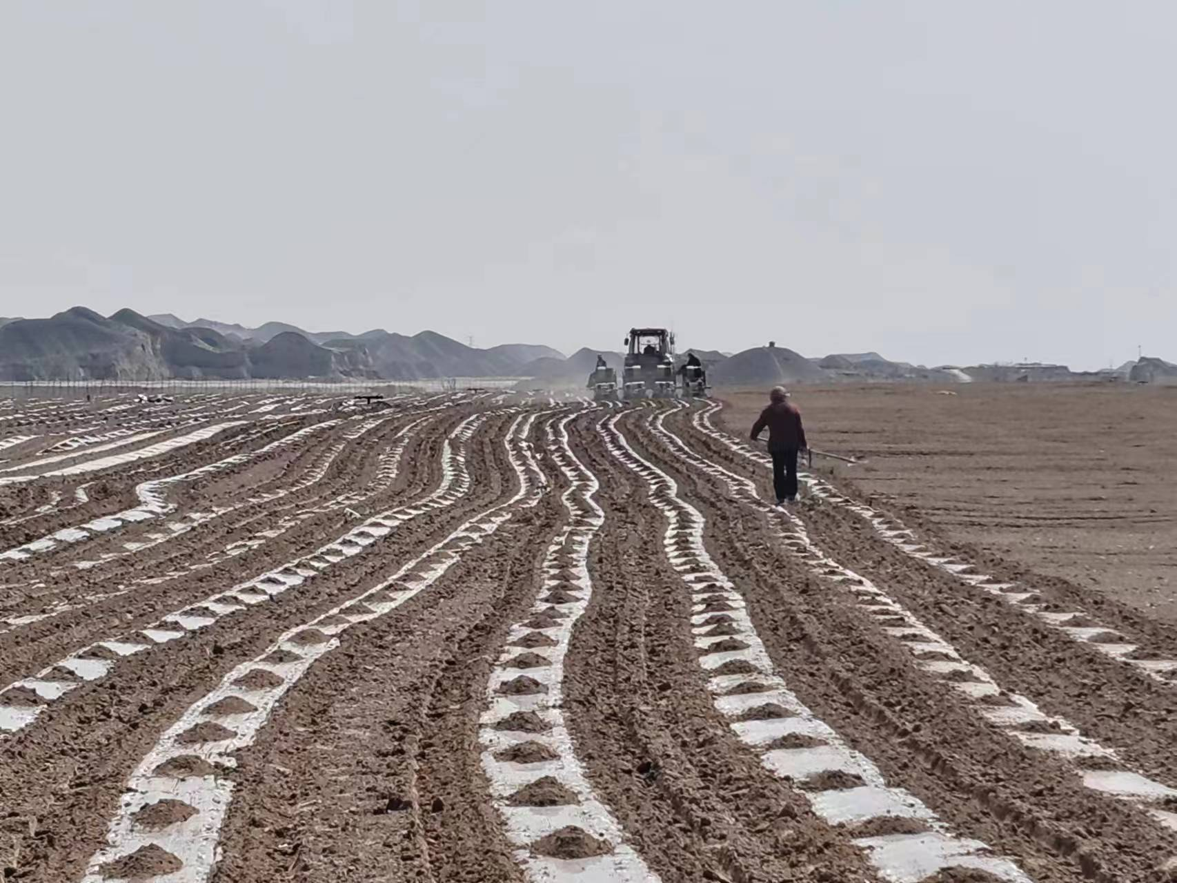 走進(jìn)蘭州新區(qū)經(jīng)三十四路以西、景中高速以東高標(biāo)準(zhǔn)農(nóng)田項(xiàng)目建設(shè)現(xiàn)場(chǎng),一臺(tái)臺(tái)玉米播種機(jī)正在徐徐前行,播種、鋪設(shè)地膜、滴灌帶等環(huán)節(jié)在現(xiàn)代農(nóng)機(jī)自帶北斗衛(wèi)星導(dǎo)航系統(tǒng)的精準(zhǔn)定位下完成,作業(yè)人員緊跟播種機(jī)查看開溝、下種、鋪膜、覆土等情況。