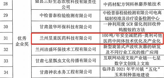 近日,從第十一屆中國(guó)創(chuàng)新創(chuàng)業(yè)大賽(甘肅賽區(qū))組委會(huì)獲悉,蘭州新區(qū)專精特新化工產(chǎn)業(yè)孵化基地的兩家入駐企業(yè)——甘肅峻茂新材料科技有限公司和蘭州昱重醫(yī)藥科技有限公司分別榮獲第十一屆中國(guó)創(chuàng)新創(chuàng)業(yè)大賽(甘肅賽區(qū))優(yōu)秀企業(yè)獎(jiǎng)。